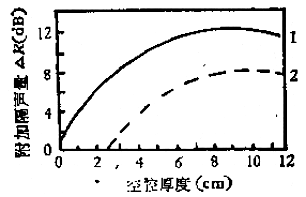 双层墙附加隔声量与中间空腔的关系(各频率的平均值)