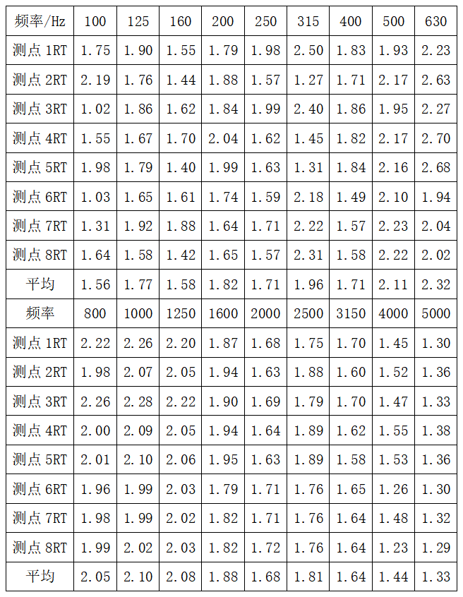 室内混响声场测量的标准偏差符合JJF1143规范:
