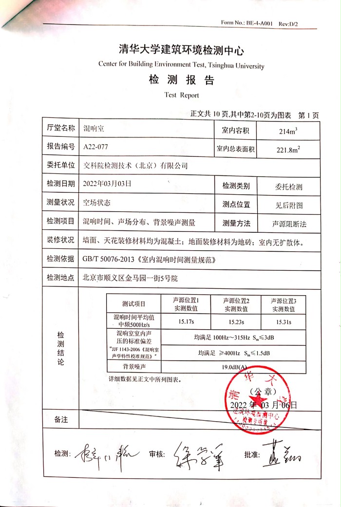 产品名称:交科院混响室