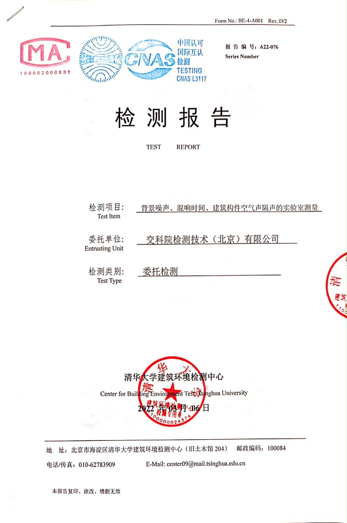 该项目位于北京市顺义区金马开发区交通部科学研究院院内,甲方为研究隔声屏障的隔声与吸声性能,建造一间混响室与一间隔声实验室。