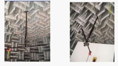 为满足测试过程中对话筒位置的调整需求,话筒的吊杆设计为可垂直升降、水平移动的装置,实际效果如下图所示: