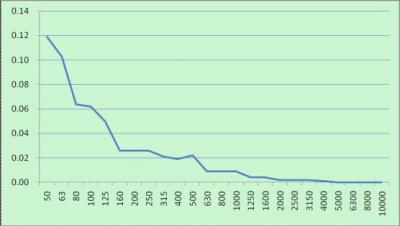 一般情况认为,尖劈吸声系数达到0.99的频率为消声室的截止频率,将相关数值代入依林公式,可知截止频率下的室内混响时间为0.0328s,参照混响时间表可知,最低小于00328s的频率为160Hz,所以该消声室的截止频率不高于160Hz。